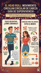 El truco definitivo: El head roll NO se lidera con las manos. Se lidera moviendo el propio torso del leader en forma circular, guiando los hombros de la follower.