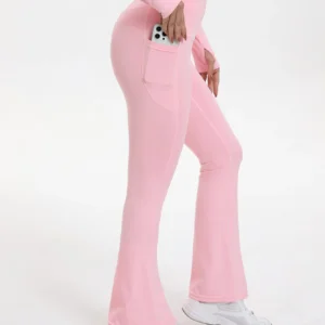 Conjunto de Yoga «Nude Feeling» con Pantalones Acampanados y Top de Cremallera con Solapa