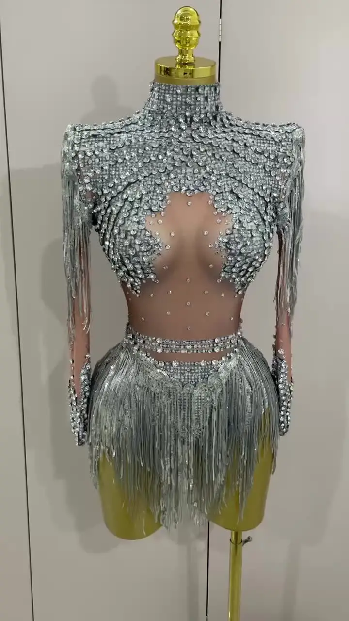 Este body elástico con borlas y lentejuelas brillantes es perfecto para actuaciones de baile latino. Con su diseño llamativo y ajustado, permite libertad de movimiento y un brillo deslumbrante en cada paso. ¡Haz que cada actuación brille con estilo y elegancia!