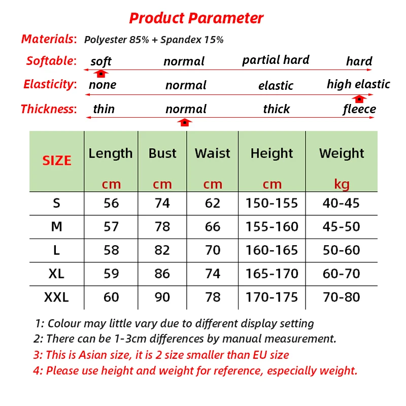Tamaño | Asian size S, Asian size M, Asian size L, Asian size XL, Asian size XXL |