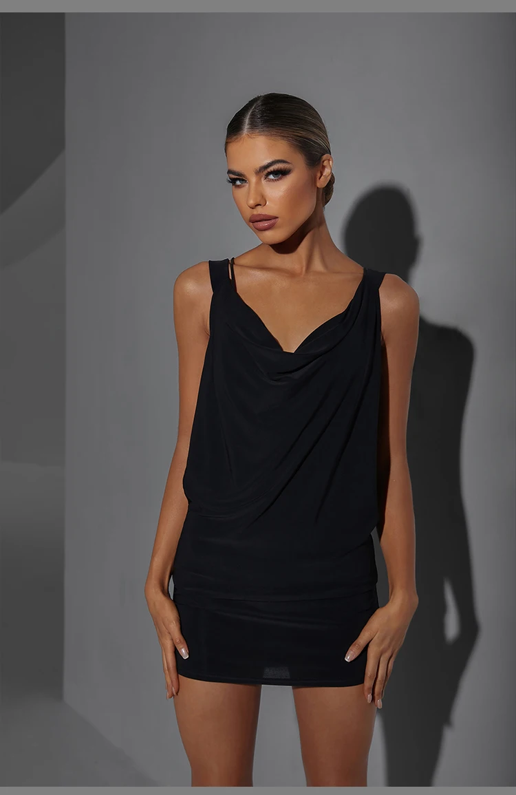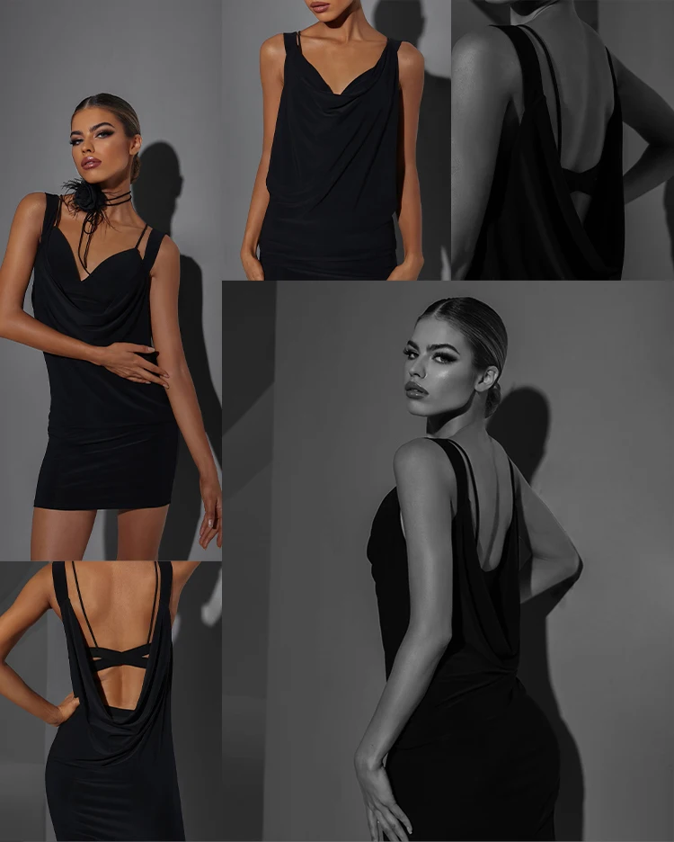 Vestido Negro Sin Mangas de Baile Latino para Mujer – Elegancia y Estilo
