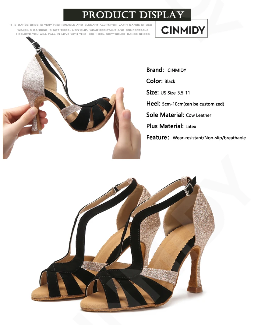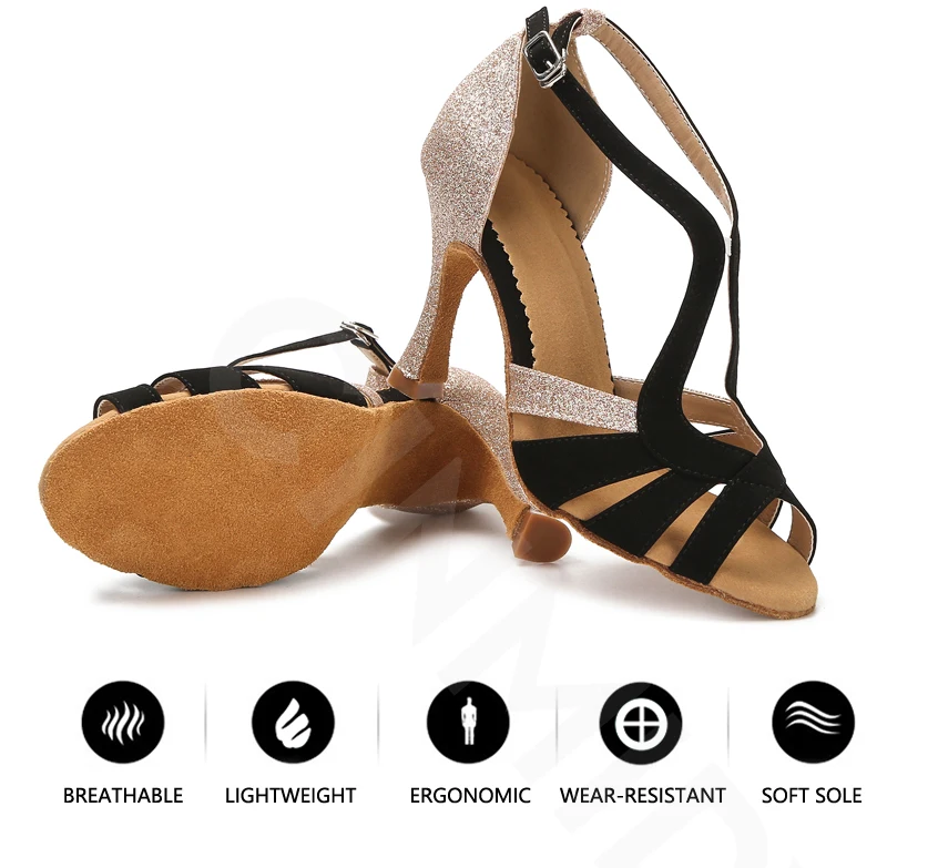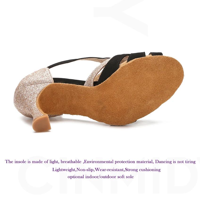 Este zapato de baile es un zapato de baile latino muy moderno y elegante que combina con todo. Usar baile no es cansado, antideslizante, resistente al desgaste y cómodo. Creo que te enamorarás de estos zapatos de baile de tacón alto con suela suave.