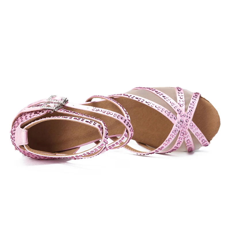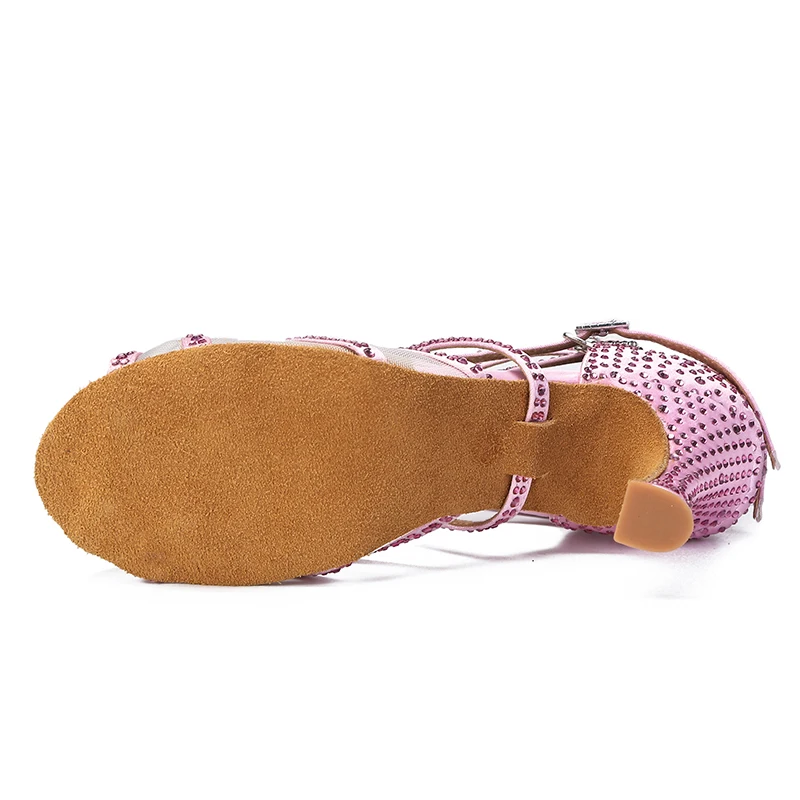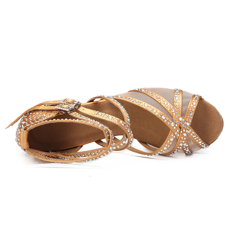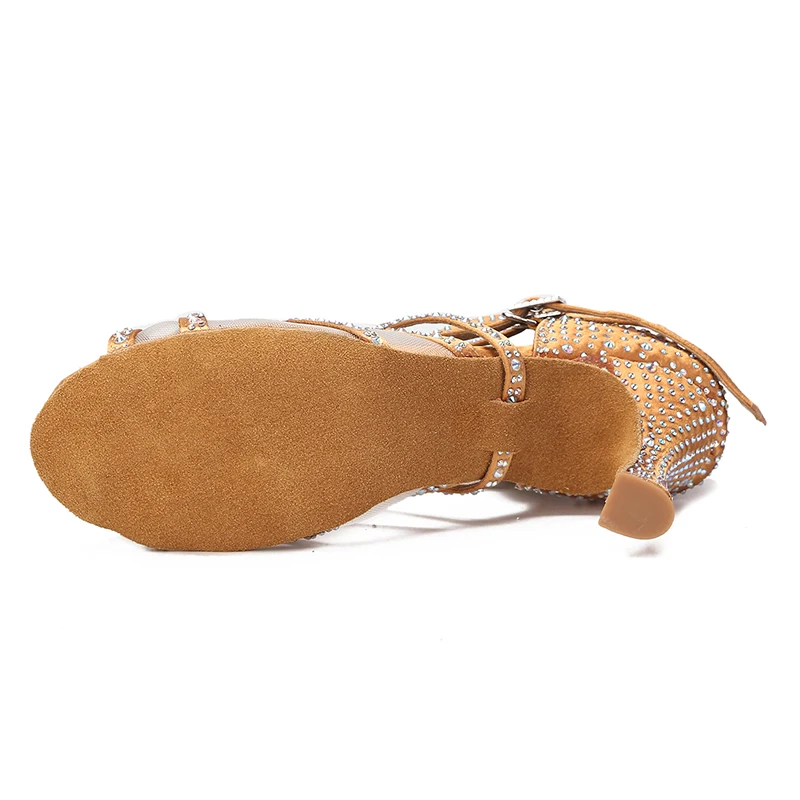 Zapatos Sandalias de Baile Latino con Pedrería – Suela Suave para Salsa y Fiestas